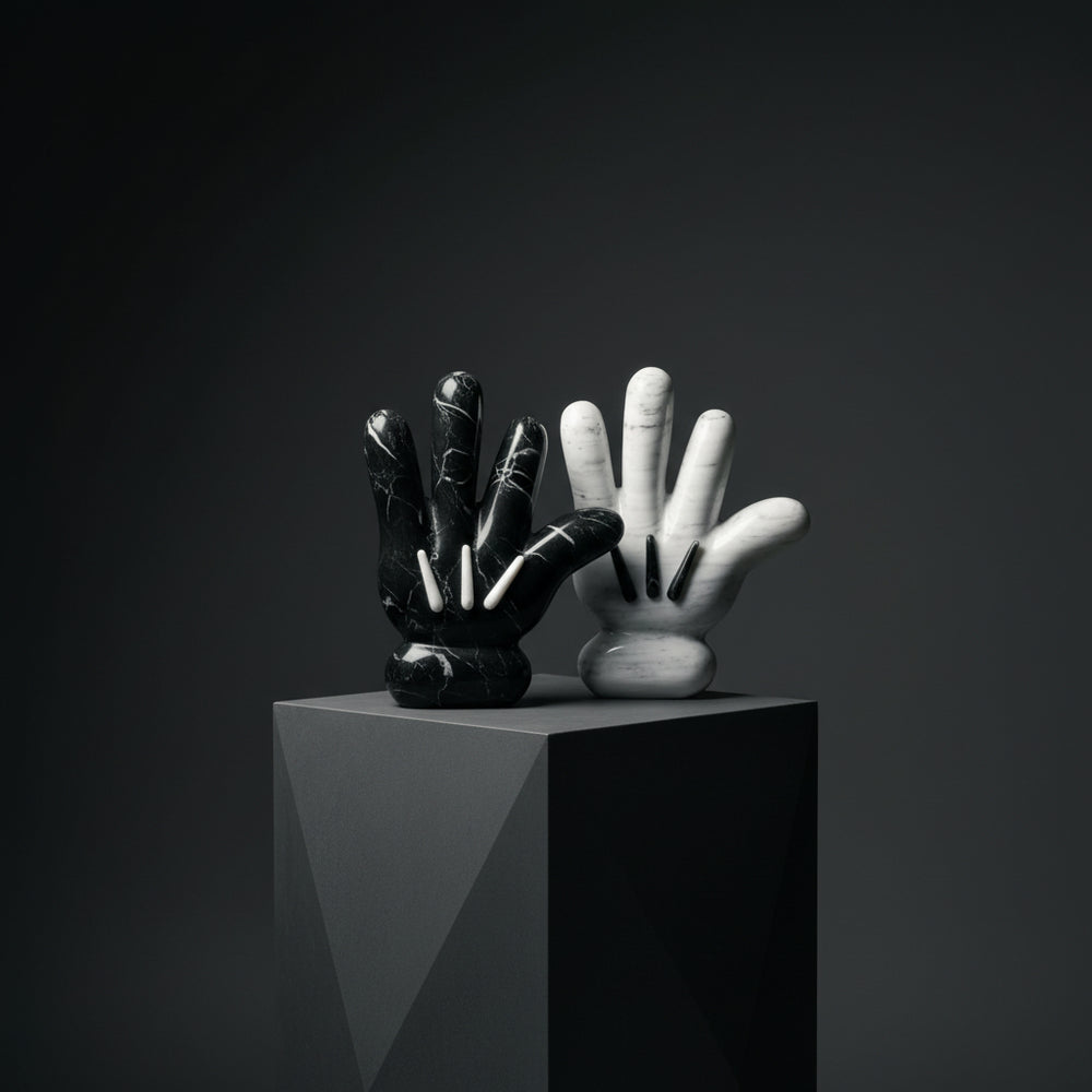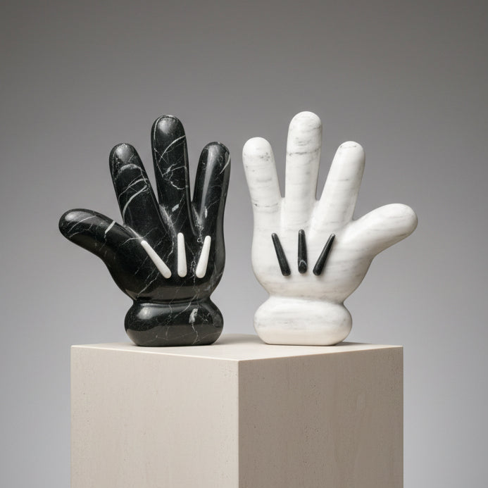Escultura en mármol natural inspirada en la icónica mano de Mickey. Con un diseño divertido y nostálgico, esta pieza combina la nobleza de la piedra con un toque lúdico, convirtiéndose en un acento decorativo único que atrae miradas y despierta sonrisas.