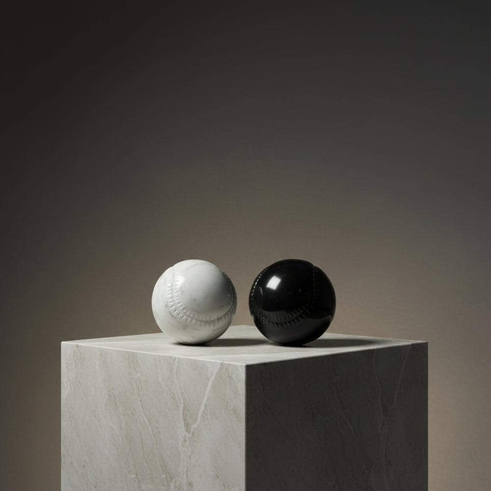 Pieza escultóricas inspiradas en el béisbol, tallada en mármol natural.
